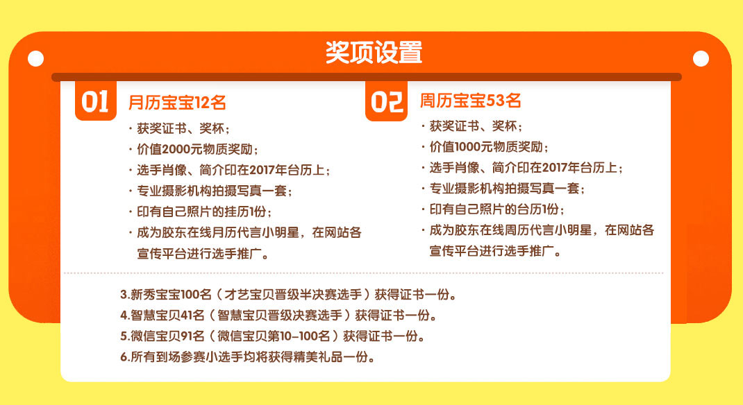 獎品贊助:山東嬰兒樂股份有限公司,煙臺海昌鯨鯊館,煙臺維正服飾,養(yǎng)樂多,萬達(dá)寶貝王,杭州娃哈哈有限公司