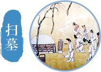 掃墓:《清通禮》云:“歲,寒食及霜降節(jié),拜掃壙塋,屆期素服詣墓,具酒饌及羖剪草木之器,周封樹,剪除荊草,故稱掃墓。”并相傳至今。