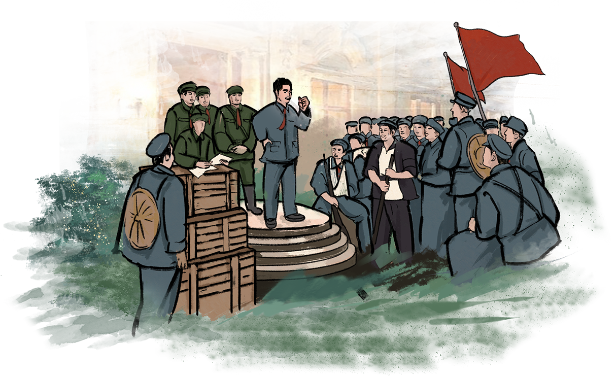 1921年7月,13位各地共產(chǎn)黨早期組織的代表來(lái)到上海,秘密聚集在上海法租界望志路106號(hào),準(zhǔn)備召開代表大會(huì)成立中國(guó)共產(chǎn)黨。7月23日晚,在這幢不起眼的石庫(kù)門小樓里,中共“一大”正式開幕。