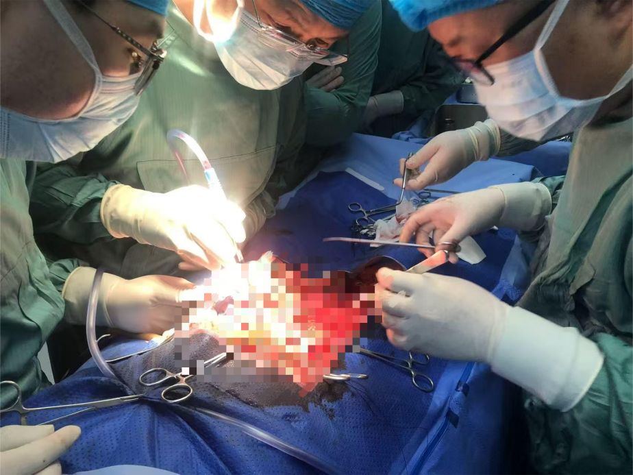事發(fā)當(dāng)晚,73歲的姜女士騎電動車時被大貨車撞傷,被120緊急送往招遠(yuǎn)市人民醫(yī)院。急診CT檢查結(jié)果顯示,老人傷情極為復(fù)雜,不僅存在多發(fā)骨折,還伴有腹部損傷、膀胱破裂、皮膚軟組織撕脫傷等緊急情況。一刻也不敢耽誤,急救團(tuán)隊立刻開展急診手術(shù),在縫合膀胱、探查大腿中下段傷口時,發(fā)現(xiàn)其右下肢股動脈自腹股溝往下無明顯搏動。